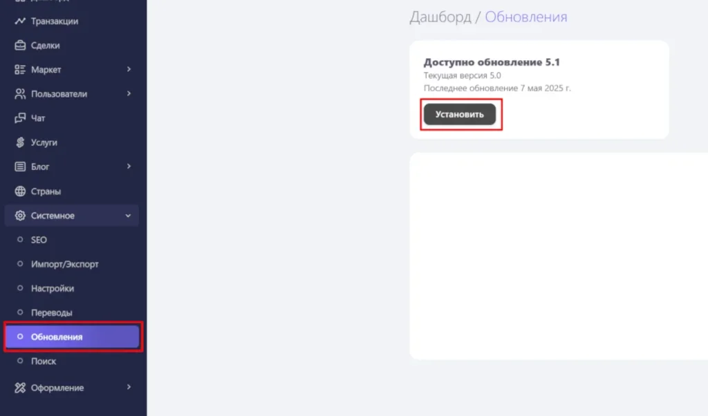 Для установки обновления необходимо перейти в раздел Системное - Обновления и нажать установить.