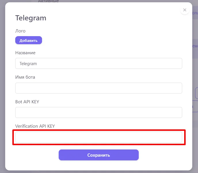 Укажите полученный API KEY в поле Verification API KEY и сохраните. Верификация номера через telegram не бесплатная, стоимость $0,01.