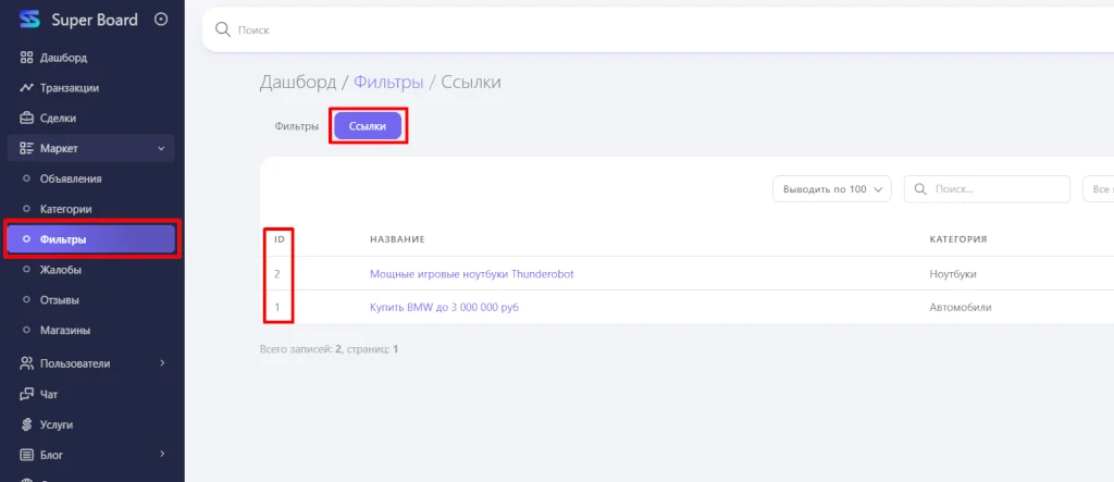 Персональные фильтры дают возможность создать каталог из конкретных объявлений. К примеру Авто марки BMW с ценой до 3 000 000 и т.п. Для создания персональных фильтров перейдите в раздел “Фильтры - Ссылки”.