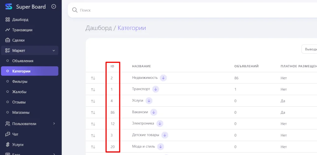 Категории объявлений
