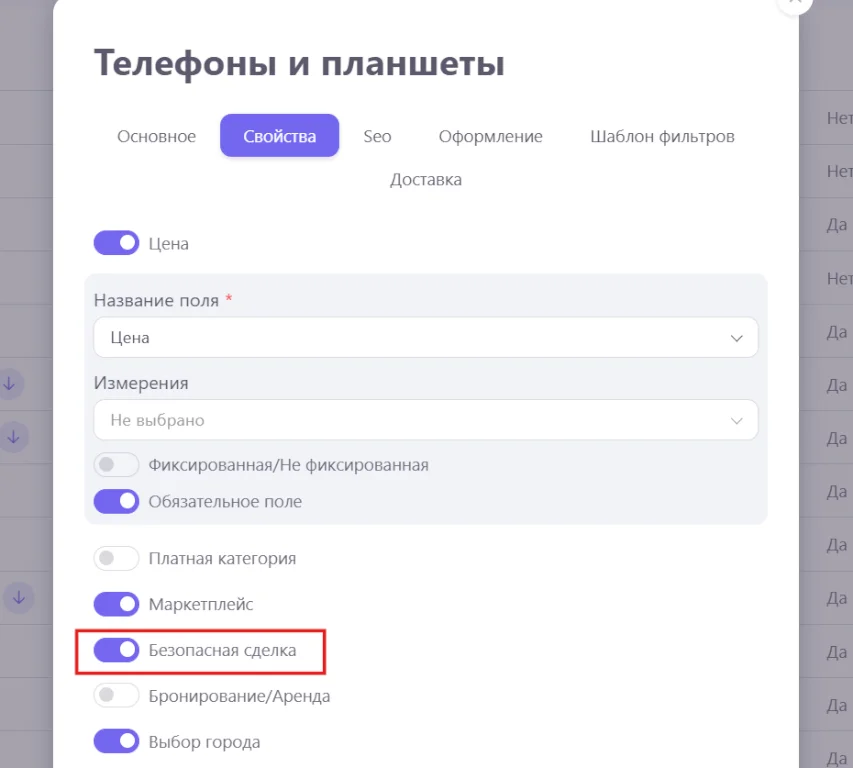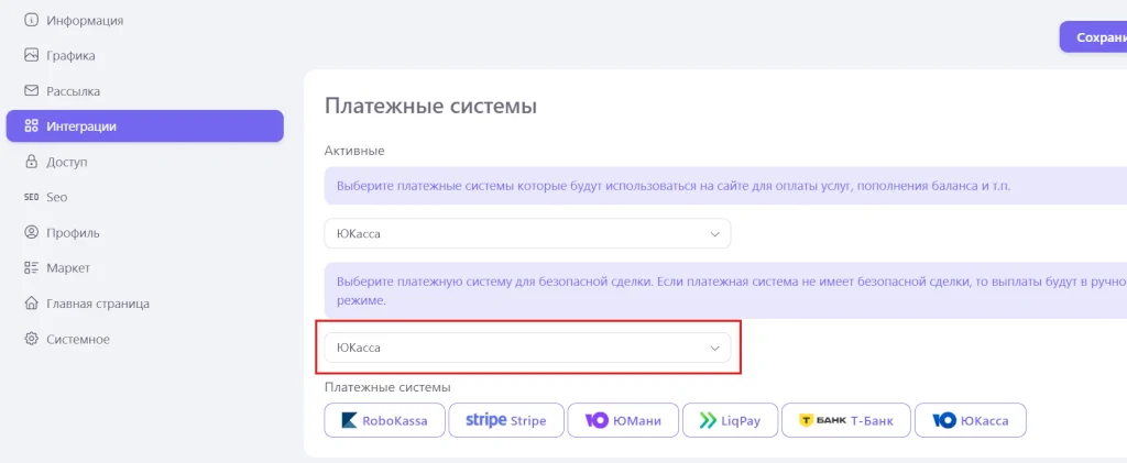 Для того, чтобы включить покупку товаров или услуг на сайте необходимо настроить категории. Для каждой категории сделки включаются и настраиваются отдельно. Так же необходимо выбрать платежную систему для безопасных сделок в настройках сайтах в разделе интеграции